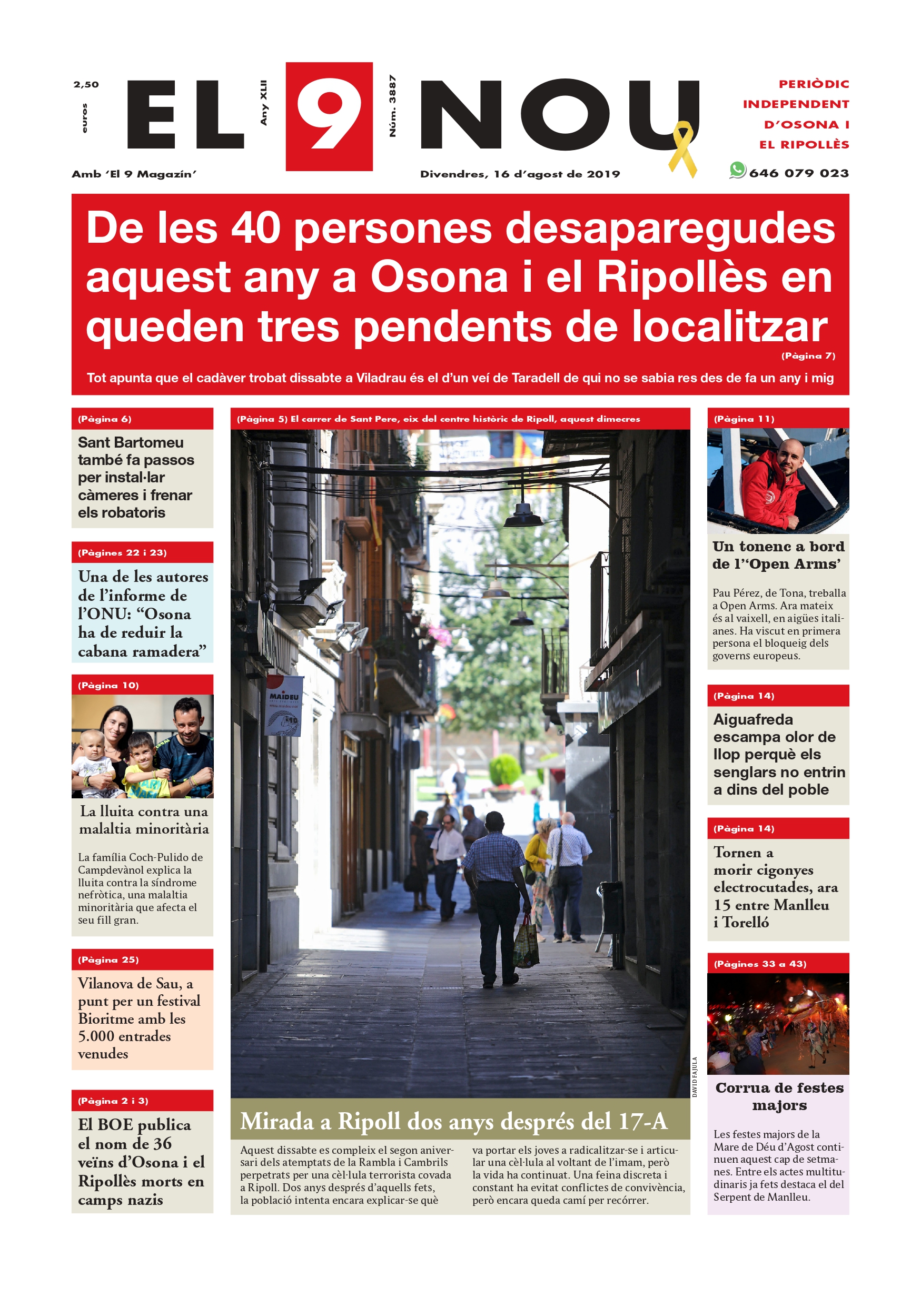 Portada del 16 d’agost de 2019 o_1_160819_1_a_pages-to-jpg-0001 (1) | Agustí Danés 16/08/2019 Notícies relacionades LA PREGUNTA Està d’acord amb la posició del govern espanyol sobre la guerra a l’Iran? Sí No En aquesta enquesta han votat 479 persones. Vota Les + vistes La N-260 continua tallada fins dilluns "com a mínim" per l'esllavissada a Sant Joan Detingut per una agressió sexual a Sant Joan de les Abadesses Troben sense vida al Collsacabra un home que estava en recerca des del matí Mor una dona en caure des d'un vuitè pis a Vic Dues botigues d'un mateix joier pateixen dos atracaments a Vic en menys de quinze dies Condueix sense carnet i té un accident a la carretera de Taradell a Santa Eugènia Què és aquest color verd del marge del riu Méder? Vic tanca un grup d’I3 a l’escola La Sínia i Manlleu, al Puig-Agut Dos incendis en uns baixos de Vic en poca estona i a 500 metres de distància Alerta pels cabals dels rius Ter a Sant Joan de les Abadesses i Ges a Torelló, que han assolit el llindar de perill