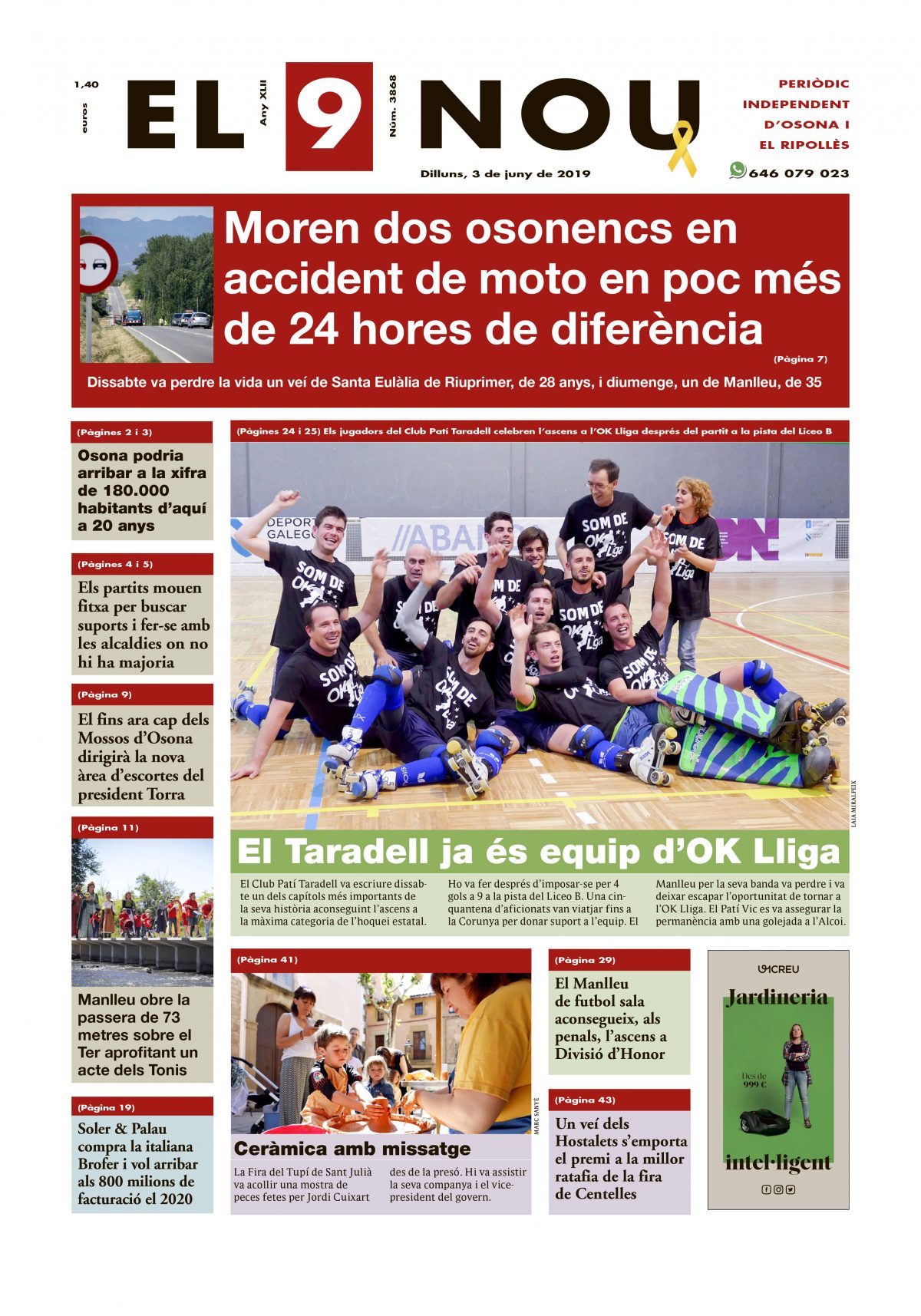 Portada d’Osona i el Ripollès Portada d'Osona i el Ripollès | Víctor Palomar 02/06/2019 Notícies relacionades LA PREGUNTA Està d’acord amb la posició del govern espanyol sobre la guerra a l’Iran? Sí No En aquesta enquesta han votat 469 persones. Vota Les + vistes La N-260 continua tallada fins dilluns "com a mínim" per l'esllavissada a Sant Joan Detingut per una agressió sexual a Sant Joan de les Abadesses Troben sense vida al Collsacabra un home que estava en recerca des del matí Mor una dona en caure des d'un vuitè pis a Vic Dues botigues d'un mateix joier pateixen dos atracaments a Vic en menys de quinze dies Condueix sense carnet i té un accident a la carretera de Taradell a Santa Eugènia Què és aquest color verd del marge del riu Méder? Vic tanca un grup d’I3 a l’escola La Sínia i Manlleu, al Puig-Agut Dos incendis en uns baixos de Vic en poca estona i a 500 metres de distància Alerta pels cabals dels rius Ter a Sant Joan de les Abadesses i Ges a Torelló, que han assolit el llindar de perill