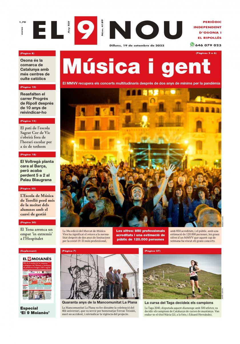Primera plana d’EL 9 NOU d’Osona i el Ripollès del 19 de setembre de 2022 o_1_190922_1_a_page-0001 | Víctor Palomar 19/09/2022 Notícies relacionades LA PREGUNTA Veu bé que el president dels bisbes espanyols opini sobre política? Sí No En aquesta enquesta han votat 181 persones. Vota Les + vistes Set detinguts i una vintena de denúncies en un dispositiu Kanpai contra la multireincidència a Vic i Manlleu La febre per trobar el número de loteria de l'anunci d'un torró ha arribat fins a Tona Fan malbé el ninot de l'escola Joan Maragall de Ripoll La Rosada de Prats de Lluçanès obre portes a una nova manera de viure i envellir al món rural Tres persones intoxicades per monòxid de carboni als Hostalets de Balenyà Girbau celebra un dinar de jubilats a les portes de Nadal Les millors imatges del Mercat Medieval de Vic Osona Ripolles S’encén un cotxe a l’Eix Transversal, a Muntanyola “Portem 22 mesos queixant-nos dels paons i no ens fan cas”