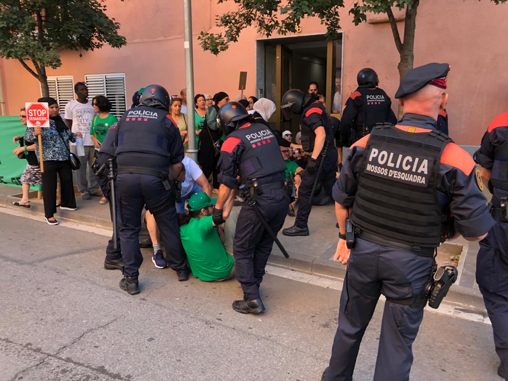 En el desallotjament, hi han participat una vintena d’efectius dels Mossos d’Esquadra que han anat apartant als membres de la PAH que han oposat una resistència passiva dificultant l’accés dels Mossos i la comitiva judicial fins a l’immoble. S’han viscut alguns moments de tensió sobretot quan els servei sanitaris del Sistema d’Emergències Mèdiques han hagut d’atendre una persona que ha patit un atac d’ansietat.