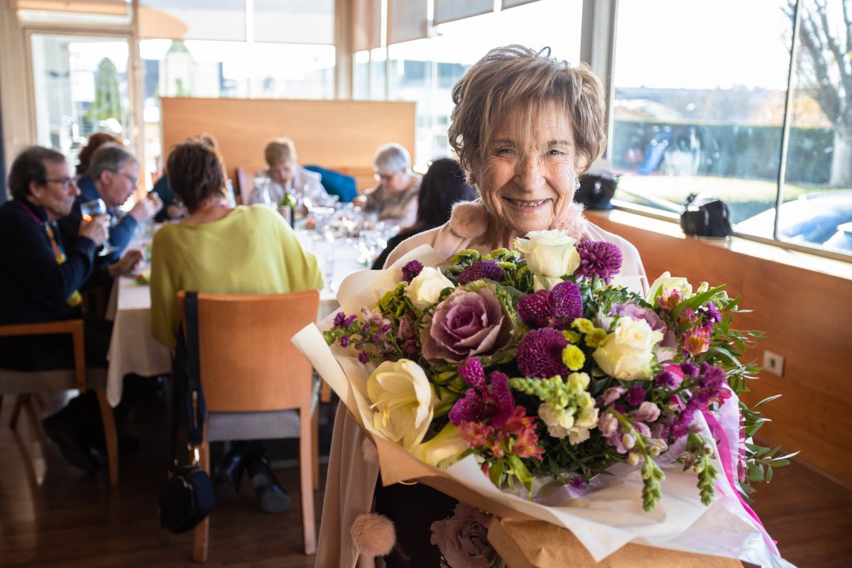 Van dinar plegats, van lliurar-li un ram de flors i unes targetes escrites amb missatges personalitzats i, sobretot, van poder recordar vivències d’aquells anys de Club Infantil. “N’hi ha hagut algun que no l’he conegut perquè feia molt temps que no el veia”, deia. També van portar alguns treballs de costura i pintura que havien fet al Club quan eren canalla i que encara conserven.