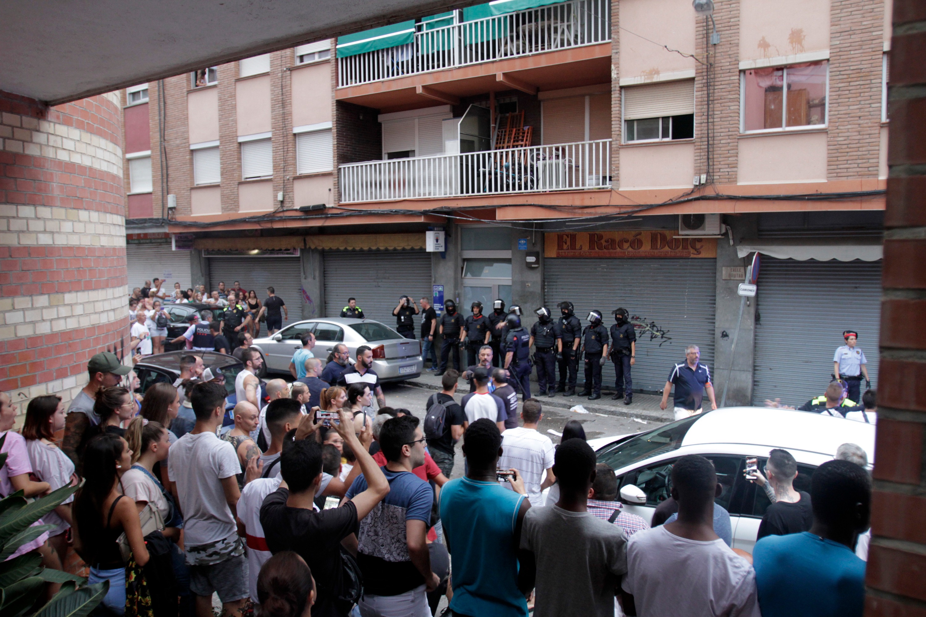 La presència d’una dotació de quatre furgonetes dels Mossos no va rebaixar la tensió que es va mantenir fins que l’alcalde i un veí van pujar al pis, van sortir al balcó i van informar que la família havia estat desallotjada. L’alcalde va demanar que tothom tornés a casa, però un nombrós grup de persones van anar fins al carrer Sant Frances, on hi ha un altre pis ocupat per la mateixa família i van llançar pedres contra les finestres tot i que la família no hi era. També hi va haver enfrontraments amb els Mossos en aquell punt.