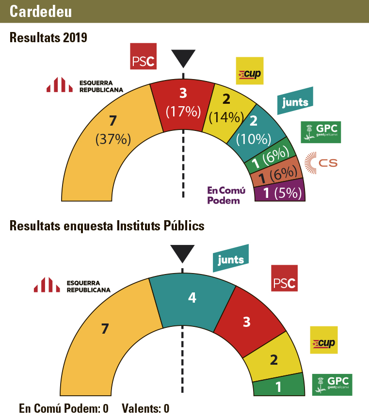 La victòria d’ERC amb set regidors es deixaria a dos de la majoria absoluta. Podrien tornar a sumar amb la CUP, amb qui han governat els darrers mandats.