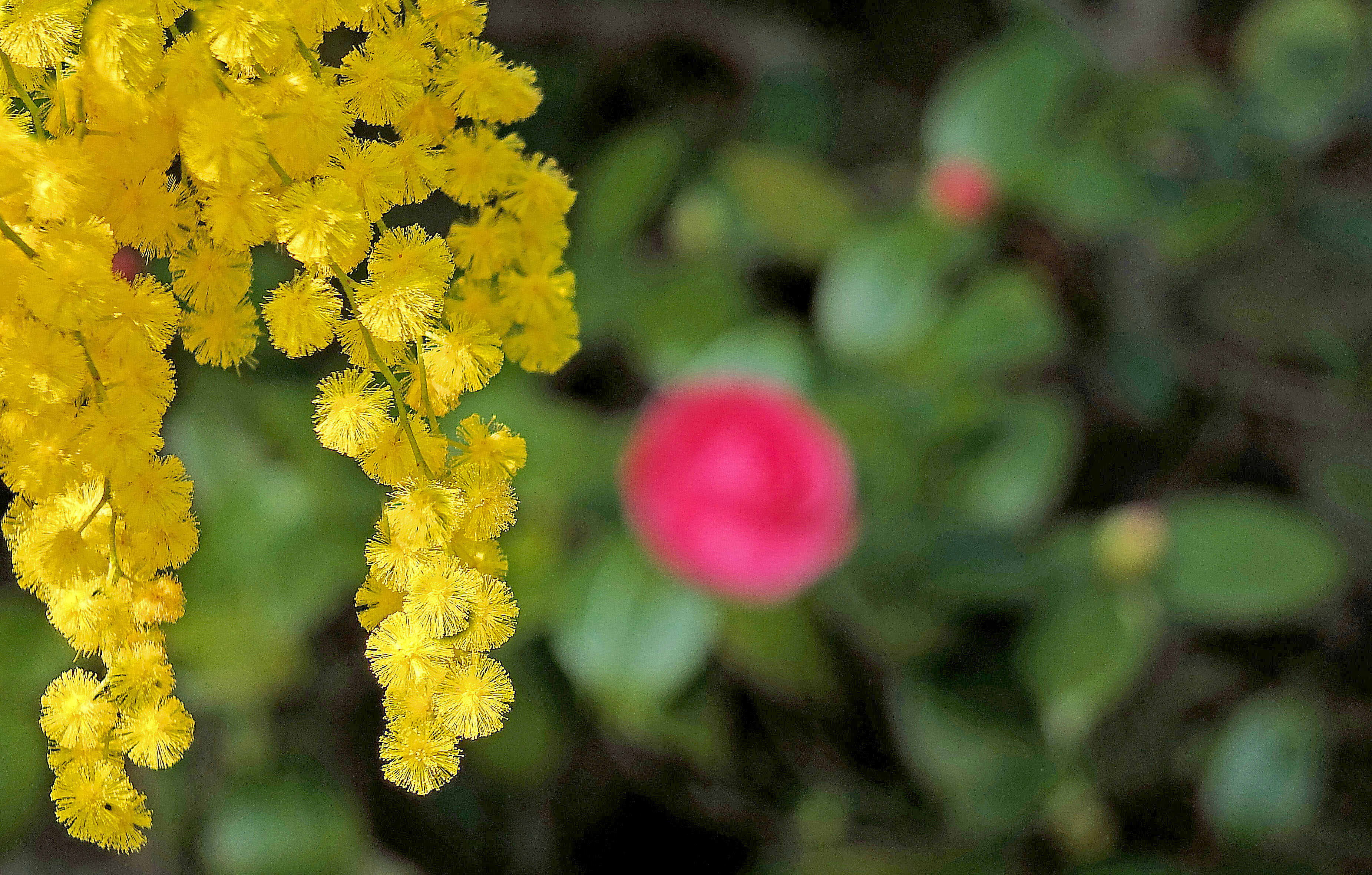 Les mimoses floreixen al febrer, segueixen de prop els ametllers. Les mimoses fan una gran floració, com llargs raïms de color groc. Joan Maragall els va dedicar aquest deliciós poema: “Avui la mimosa altiva /…
