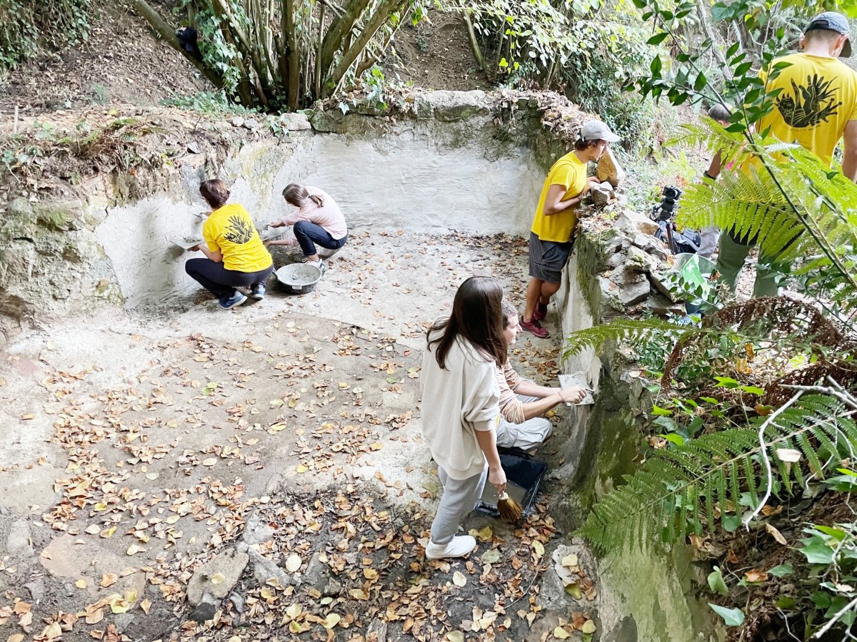 La primera intervenció va ser buidar l’interior de la bassa, on amb el temps s’havien anat acumulat terra i pedres. També van treballar per eliminar la presència de canya americana –una espècie vegetal al·lòctona– a tot l’entorn. Llavors, van començar a refer les parets i impermeabilitzar-les per retenir de nou l’aigua. “Ens interessa que estigui preparada per recollir l’aigua del torrent quan plogui”, diu Valls.
