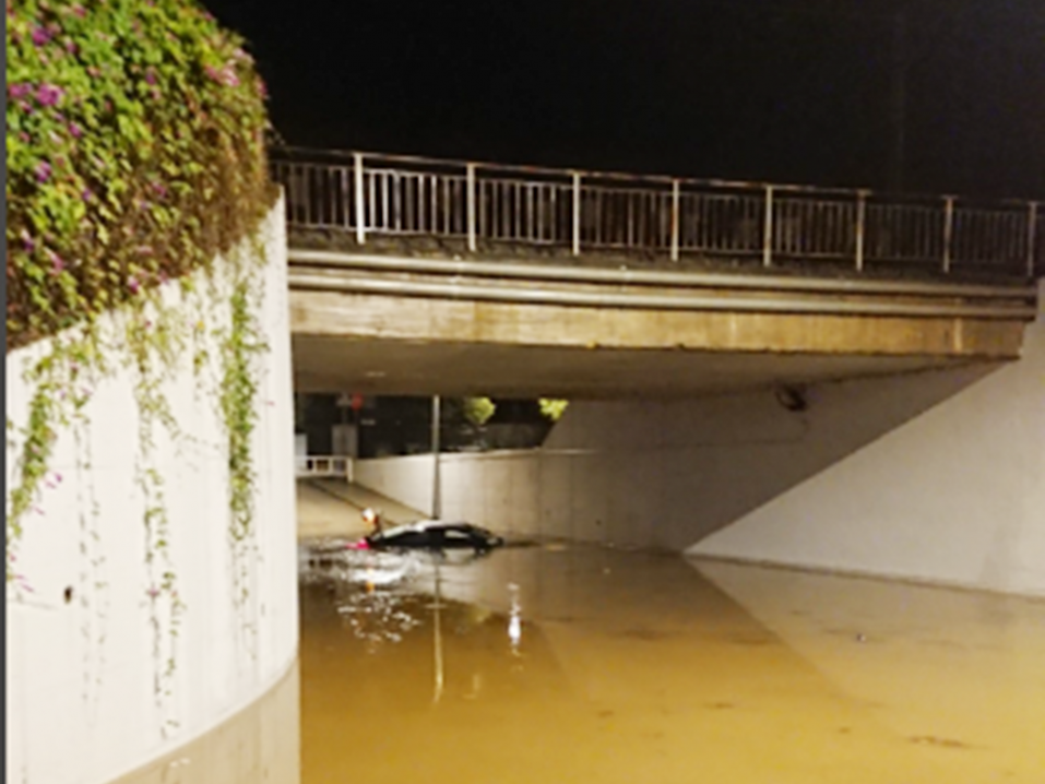 El vehicle havia quedat encaixat en un túnel que connecta la N-II amb el passeig marítim del municipi. En el pas hi ha unes canonades d’aigua, explica Tomàs, que no van poder suportar la gran quantitat d’aigua que baixava, i l’expulsaven amb força. “El primer que vaig fer va ser trucar al 112 i a la Policia Local per informar del que estava passant. El cotxe estava bloquejat, portes i finestres, i les persones estaven molt nervioses. Va ser llavors quan vaig decidir actuar.”