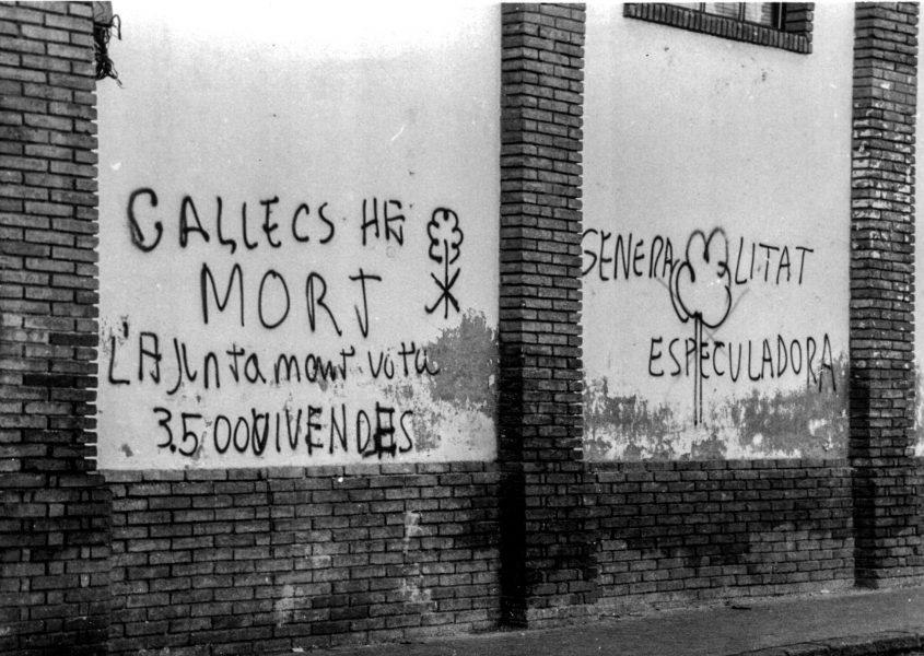 Neix la Comissió per a la Defensa de Gallecs, que fa les primeres reunions al barri de Plana Lledó i després les farà a la masia de Can Jornet. L’abandó de les cases i les terres dona peu a situacions de pillatge i degradació. Comencen les primeres ocupacions a Ca l’Estany. Can Maiol, Can Boada Vell, Can Jornet de Palau, Can Veire, Can Torrents, la Casa Nova, Can Ros (a la foto), Can Mulà, Can Jornet de Gallecs o Can Mates.