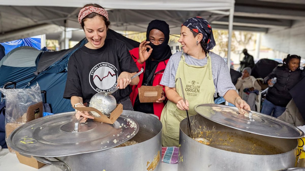 L’entitat Cuineres per la Pau, sorgida per alimentar la Flotilla Global Sumud, es mobilitza des de diumenge passat per proporcionar menjar a les persones desallotjades de l’antic institut B9 a Badalona, la majoria dels quals busquen refugi del fred i la pluja sota el pont de l’autopista C-31. Amb l’ajuda d’una seixantena voluntaris, cuinen en un espai cedit al Casal Antoni Sala i Pont, on també dormen alguns dels desallotjats. Per les tasques de distribució compten amb la col·laboració d’una xarxa de veïns del barri, organitzats fa anys per la donació de menjar a persones vulnerables a Badalona, que porten les olles i les racions fins al pont.