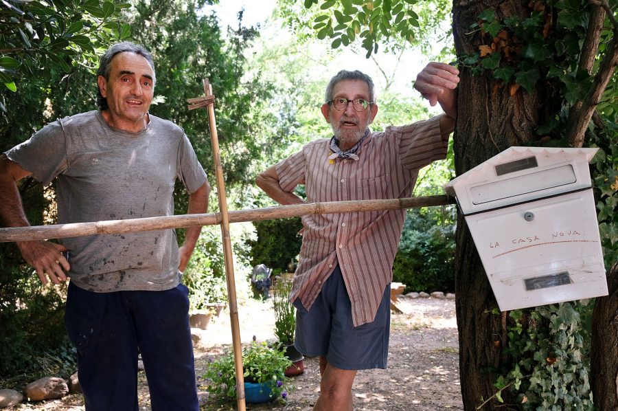 Pràcticament tots els ocupants de les cases de Gallecs en la dècada dels 70 i 80 van marxar alguns anys després. Josep Lluís Pérez, de 60 anys [a l’esquerra de la fotografia amb Francesc Rosella], no. Des del 1982, viu a la Casa Nova, prop del nucli de l’església. Actualment, l’acompanya el seu fill petit, de 14 anys. El 1993, en un reportatge publicat a EL 9 NOU explicava que “després dels primers anys d’eufòria”, la majoria de la gent havia deixat les cases perquè s’adonaven de la dificultat de viure de l’agricultura. Pérez explica que va arribar a Gallecs després de voltar per diferents zones rurals de Catalunya i València: “Volia tornar al camp, d’on venien els meus avis. Vam acabar a la Casa Nova amb la meva parella i el meu fill gràcies a un anunci a la revista Integral. La Casa Nova dels anys 80 i l’actual té un aspecte molt diferent per dins i per fora.”