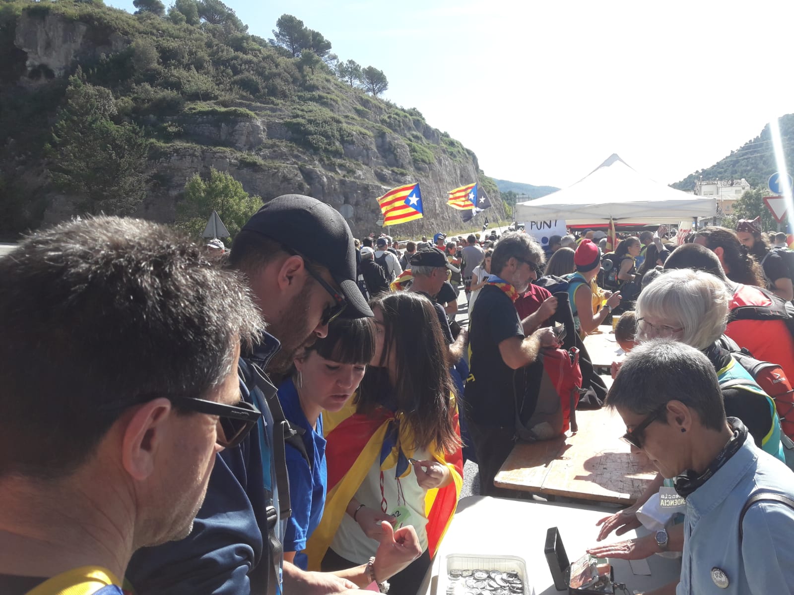 La Taula de la Democràcia de Centelles, constituïda especialment per donar resposta als actes després de la sentència, disposava d’entrepans per a 1.200 marxants gràcies a les donacions de particulars, empreses i comerços. La participació ha sobrepassat totes les previsions, però també col·laboren en l’avituallament molts veïns i veïnes.