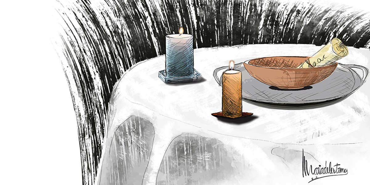 L’encens és una aportació personal de l’Adriana: no sap exactament per què serveix, però ha pensat que li donaria un aire més sofisticat i místic que creu que s’escau al moment transcendental que viuen. La Palmira esbufega i treu de la seva bossa un parell d’espelmes de recanvi, mentre renega amb la boca tancada. Ella és una bona professional i l’Adriana, una torracollons que només fa que posar-li bastons a les rodes. D’un bon començament, la Palmira li va comentar que el malefici seria més efectiu si el feien al cementiri, però l’Adriana, poruga de mena, va començar a tenir malsons, imaginant-se ànimes esmunyint-se per sota les lloses dels sepulcres. Fins que al final, la Palmira, cansada de les seves collonades, li va deixar triar el lloc. I ella no es va fer pregar: el menjador de casa seria el lloc ideal.