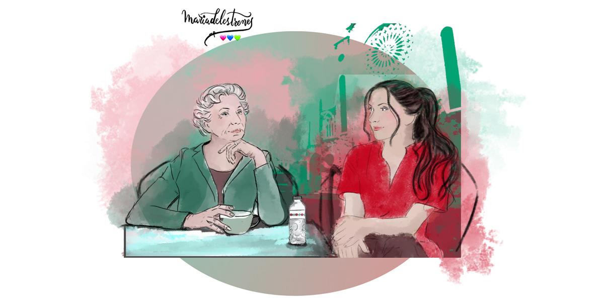 La dona s’asseu, i mentre l’observo. Va molt arregladeta, amb una faldilleta pel genoll de color verd oliva, una brusa marró clar i una americana a joc amb la faldilla. Porta els cabells agafats amb un passador del mateix verd que la roba. Va maquillada, però sense excessos. Una mica de pintallavis, i una miqueta d’ombra d’ulls. Li observo les mans, unes mans que, de ben segur, amb cada arruga podrien explicar una bonica història viscuda. Veig que porta anell de casada.