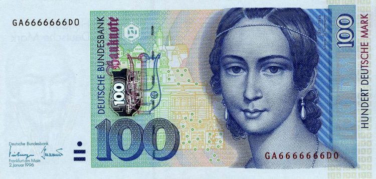 Només amb el Trio Op.17 Clara Schumann ja hauria passat a la història de la música. Una imatge seva apareix en l’anvers del bitllet de 100 marcs alemanys d’abans de l’adopció de l’euro, fet que corrobora que no ha estat oblidada. En el revers, una imatge del seu piano i la façana del conservatori de Frankfurt on ensenyava. En el bitllet hi ha els colors lila i groc, entre altres. Tots la representen.