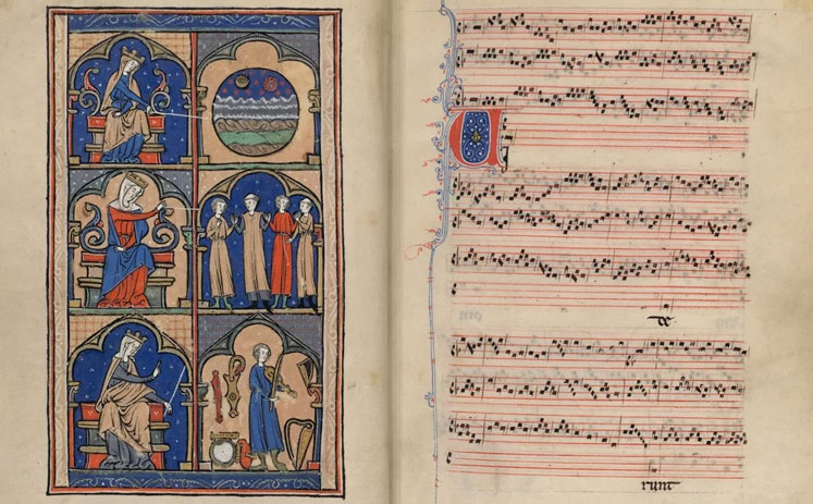 La transformació de París que va suposar la construcció de la catedral de Notre-Dame va tenir una empenta urbanística, econòmica i social tan inaudita que va arribar a la música. Al seu entorn s’hi va crear un dels centres musicals més importants d’Europa: l’Escola de Notre-Dame. De la seva feina n’ha quedat un llibre del segle XIII, el Magnus Liber Organi, que ens llega el que avui coneixem del que fou l’avantguarda musical de l’època i una de les seves pàgines il·lustra aquest article. S’hi esmenten dos noms, Léonin i Pérotin, com el millors compositors d’organum, que és el terme que definia aleshores la composició consistent a afegir al cant gregorià diverses melodies autònomes. Conèixer-ne l’autoria era excepcional, ja que el comú era que diferents músics de manera anònima hi anessin afegint les veus en diferents temps, en un sistema additiu de composició a l’estil de les catedrals.
