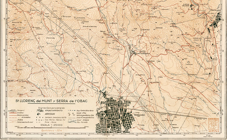 Érem petits i fèiem colònies. Vam aprendre a servir-nos de les corbes de nivell abans de saber, ben bé, què eren. Els mapes de l’Alpina, no n’hi havia d’altres, ens acompanyaven a les excursions (com aquesta reedició del de Sant Llorenç del Munt i la Serra de l’Obac del 1947 que il·lustra aquest article). Que aquells mapes fossin editats a Granollers ens induïa la vaga i falsa idea que, més o menys, a cada capital de comarca hi devia haver una Alpina. Tan falsa que aquella editorial era única a Catalunya i a Espanya i aquells mapes, els únics a l’abast dels excursionistes.